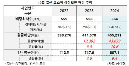 현금배당 45.5조로 역대 최대…전년비 11%↑