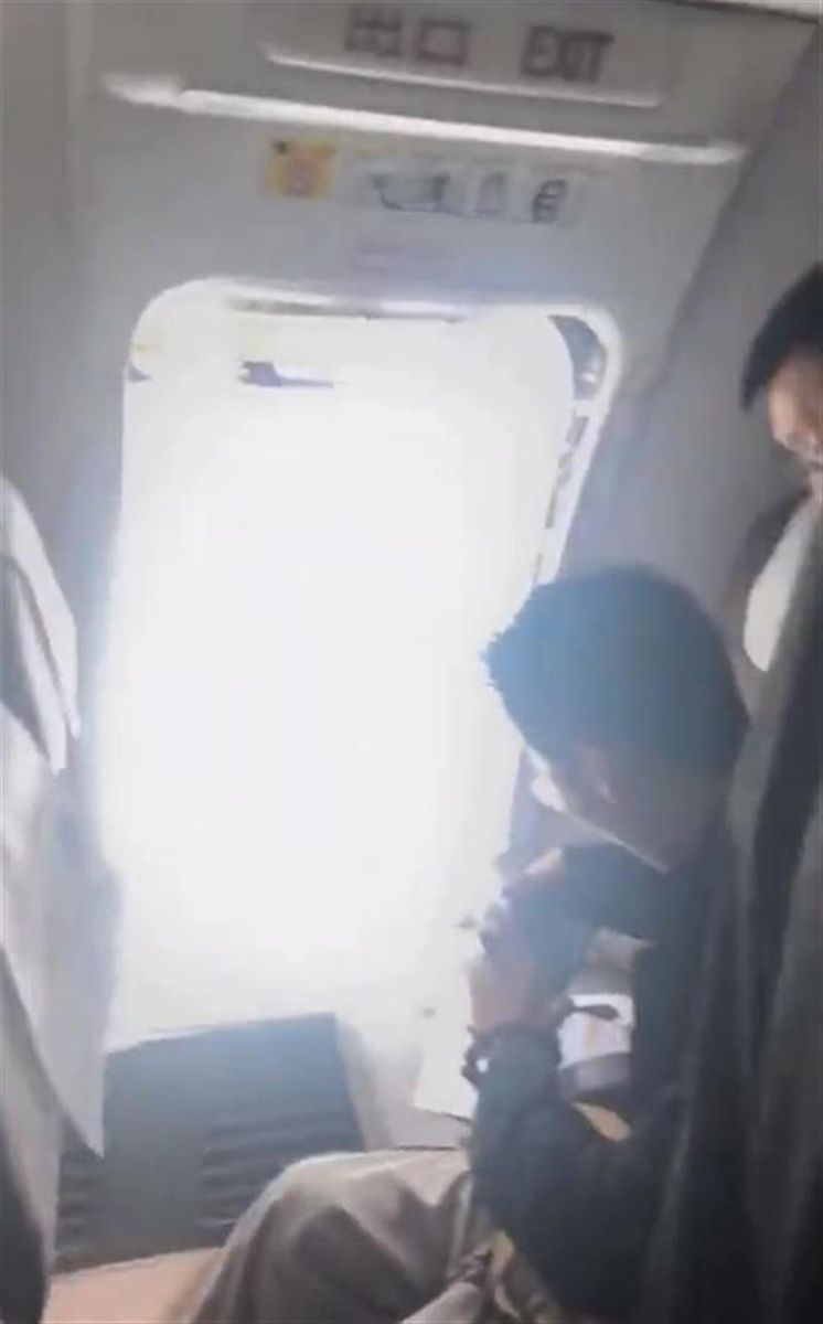 중국에서 항공기 비상구를 무단 개방한 승객. [지무뉴스 캡처] |