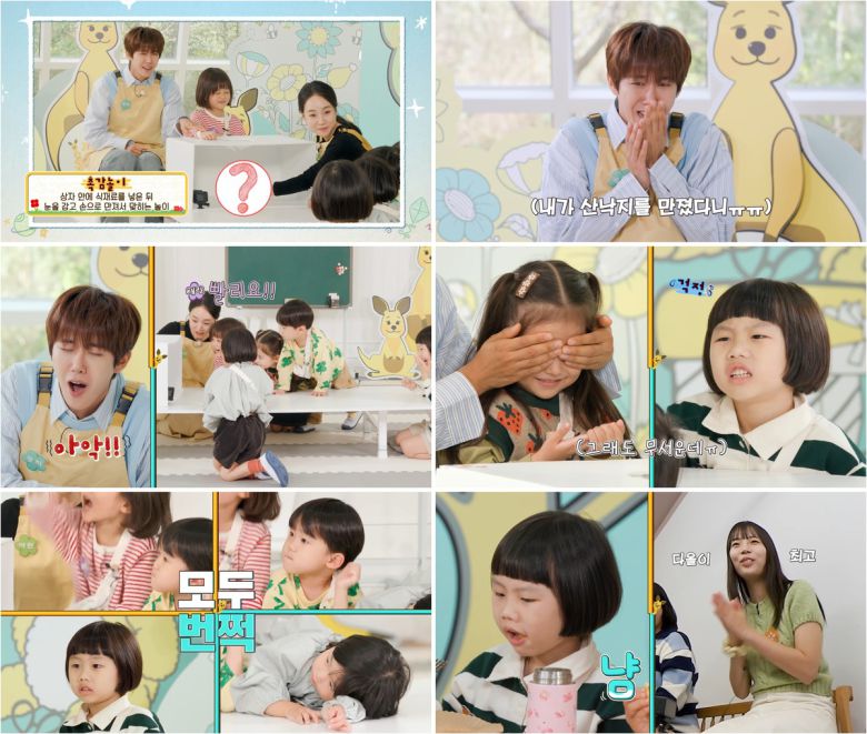 12일 공개된 ‘랜선 육아왕 : 꽃꼬마 프로젝트’ 2회에서 다섯 명의 꽃꼬마들은 상자 속에 숨겨진 편식 재료를 손으로 더듬으며 그 정체를 맞춰보는 미션에 도전했다. 호기롭게 시범에 나선 광희 선생님은 상자 안에 손을 넣자마자 산낙지를 만져 몸을 움찔였다. 예상치 못하게 크게 당황한 선생님의 반응에 아이들은 웃음을 터트렸고, 덕분에 분위기는 한결 부드러워졌다. 광희의 유쾌한 시범 이후 아이들은 자신감을 얻고 상자 속 식재료를 하나씩 만져보기 시작했다. 보이지 않는 상태로 마주한 식재료의 낯선 촉감에 다소 두려워 하면서도 꽃꼬마들은 조심스레 손을 뻗으며 그동안 멀리했던 식재료들과 친해지는 시간을 가졌다.