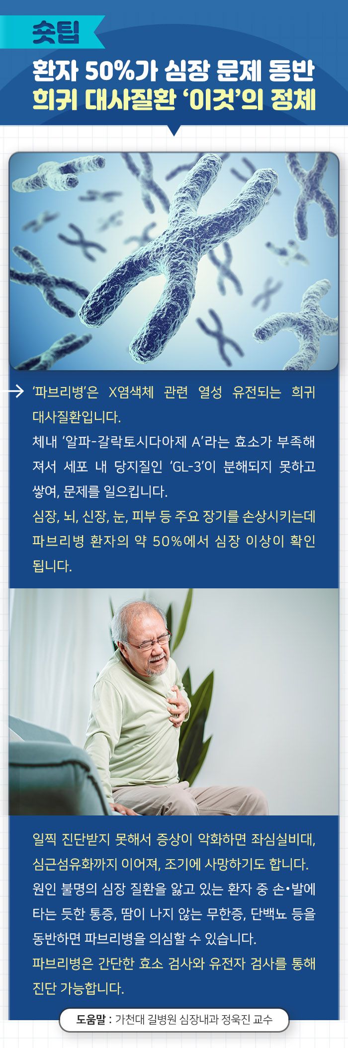 희귀 대사질환 '이것’의 정체 '파브리병’은 X염색체 관련 열성 유전되는 희귀 대사질환입니다.