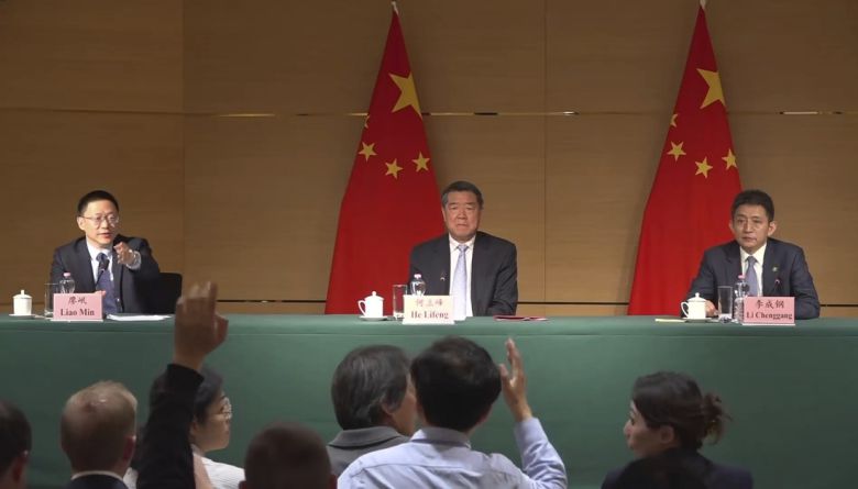 이날 기자회견에는 리 부부장과 허리펑 국무원 부총리, 랴오민 재정부 부부장 등이 참석했다. 허 부총리는 미국과의 회담 후 응고지 오콘조이웰라 세계무역기구(WTO) 사무총장을 만났다고 CCTV가 전했다. 허 부총리는 오콘조이웰라 사무총장에게 “중국은 WTO 틀 내에서 다자주의와 자유무역을 수호하겠다”고 말한 것으로 전해졌다.