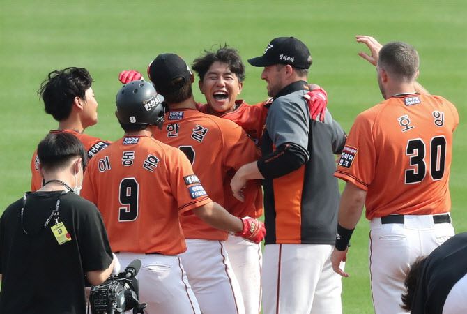 한화 벤치의 모든 선수들이 뛰어나왔다. 히어로가 된 노태형은 물세례를 받았다. 얼어있던 구단 관계자들의 표정도 풀리기 시작했다. 목소리 톤도 높아졌다. 취재진의 축하가 이어졌다. 바로 경기를 진행해야 했기에 연패 탈출의 기쁨을 오래 누리지 못했다. 이어 열린 경기에서도 승리하며 연패 탈출 후 2연승. 기쁨은 식지 않았다.