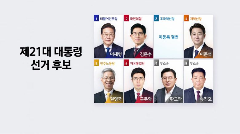 사전에 아무래도 양당 모두가 두 후보로 뭉치는 그런 교통 정리 작업 등을 거쳤기 때문에 후보가 상당히 줄어든 게 아닌가 생각이 됩니다. 또 대표적으로 현재 3당이라고 할 수 있는 조국혁신당 같은 경우에도 후보를 내지 않았기 때문에 지금 기호 3번이 비어 있는 상황이죠. 그래서 이재명 후보 같은 경우에도 진보당 후보와 단일화를 했었고 저희 국민의힘 같은 경우에도 한덕수 전 후보를 비롯한 무소속 후보들의 정리 과정들이 있었기 때문에 역대 가장 적은 후보로 정리가 된 게 아닌가라는 생각이 들고요.