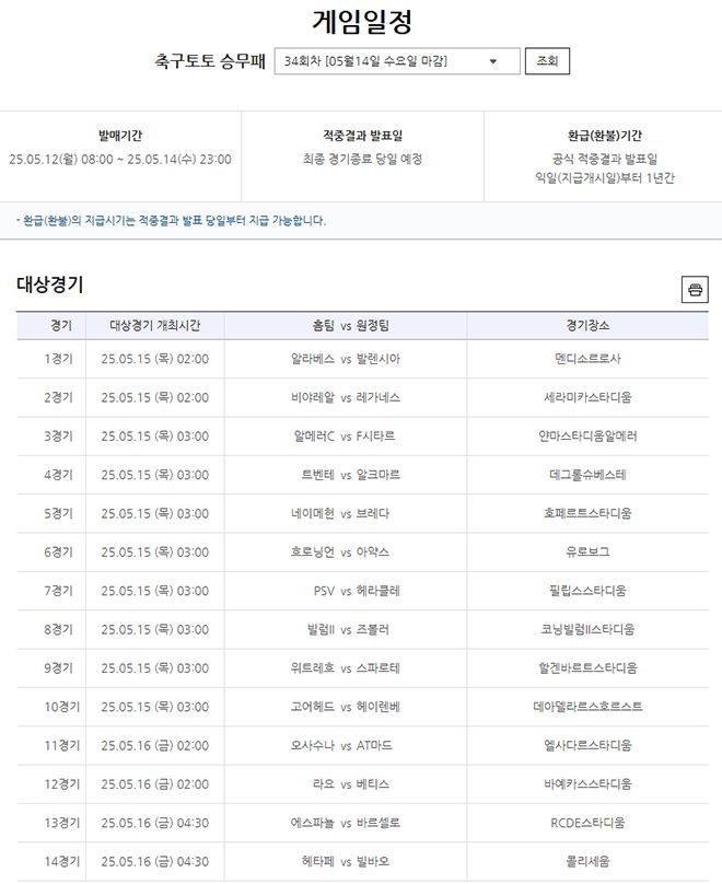축구토토 승무패 34회차, 네덜란드·스페인 리그 중심…5월12일(월) 발매 시작
