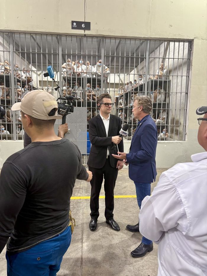 영국 데일리메일에 따르면 이 영상은 앤디 오글스, 비센테 곤잘레스, 안나 폴리나 루나 등 미국 하원의원단이 나이브 부켈레 엘살바도르 대통령과 함께 테러범수용센터를 시찰하는 과정에서 촬영됐다.
