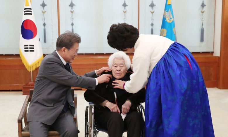 문 전 대통령 재임 시절인 2018년 1월4일에는 다른 일곱 명의 할머니들과 함께 청와대를 방문해 대통령에게 이렇게 말했다.