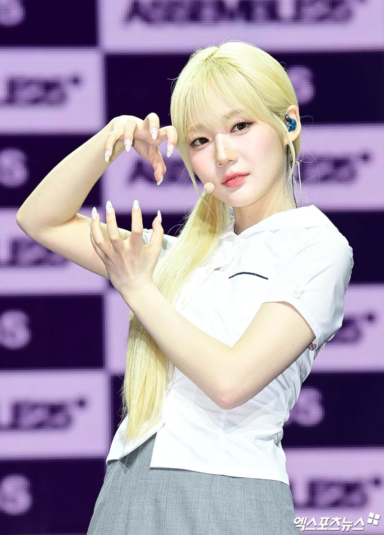 이날 쇼케이스에 참석한 트리플에스 윤서연이 포토타임을 갖고 있다.