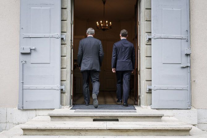 허리펑 중국 국무원 부총리가 미국과 무역 회담에 앞서 지난 9일(현지시간) 스위스에 도착해 스위스측과 양자회담하고 있다. (사진=AFP)
