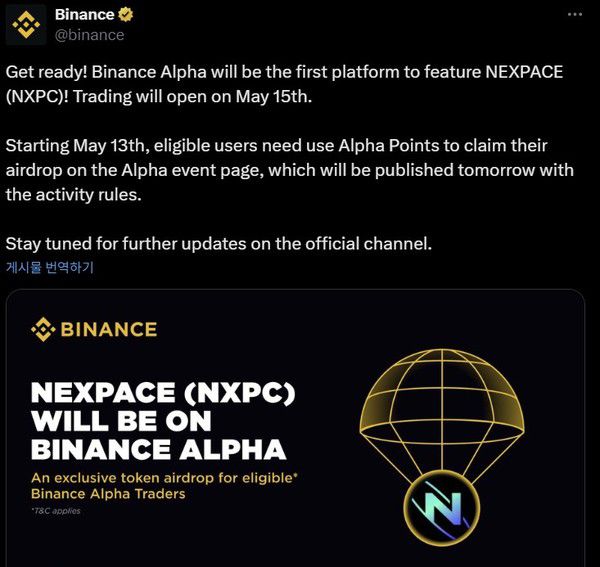 12일 관련업계에 따르면 바이낸스는 오는 15일 NXPC 상장을 진행한다고 공지했다. 이에 앞서 NXPC는 빗썸에 입성, 추후 거래 개시시점을 공표할 예정이다.