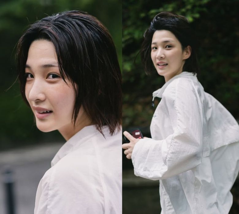 공개된 사진 속 율희는 쏟아지는 비를 뚫고 젖은 머리와 옷에도 달리고 있어 눈길을 끈다.