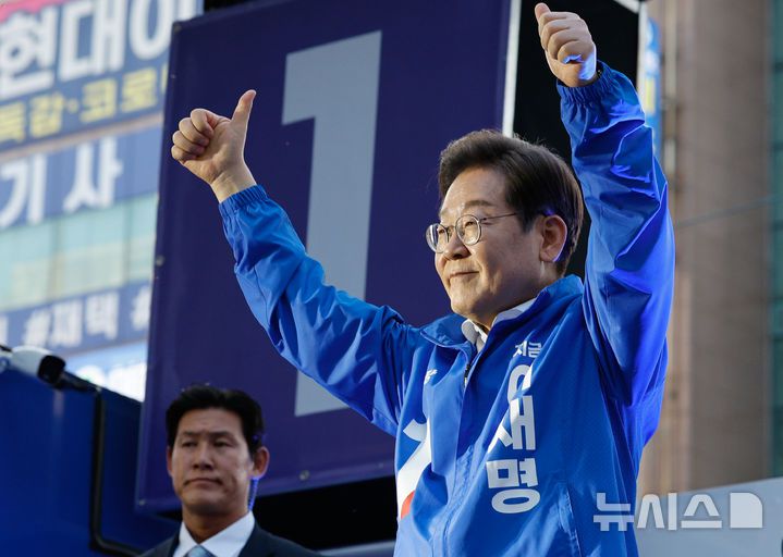 앞서 조승래 민주당 선대위 수석대변인은 이날 대전 유세 현장에서 "지금 (프로야구) 한화 승률이 60%가 넘는다. 이재명 후보(득표율)도 60%를 넘겨야 한다고 생각한다"고 보탰다.