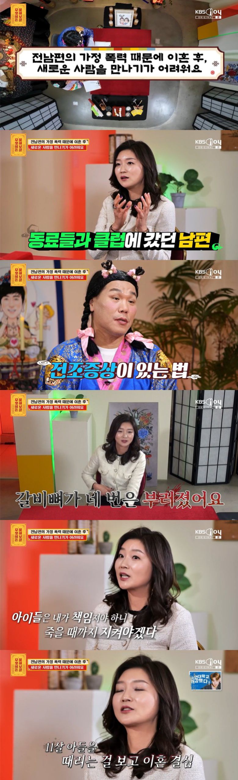 (엑스포츠뉴스 김보민 기자) 전남편의 가정 폭력으로 사람과의 만남이 어렵다는 사연자가 등장했다.