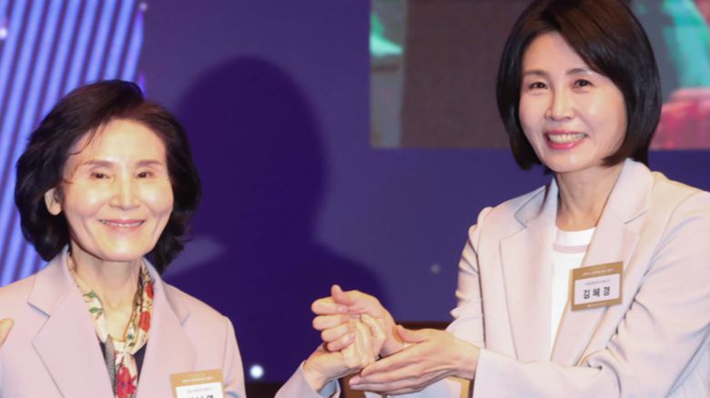 더불어민주당 이재명 대선 후보의 배우자 김혜경 여사와 국민의힘 김문수 후보 배우자 설난영 여사가 공식선거운동 첫날, 조계종 행사에서 만났습니다.