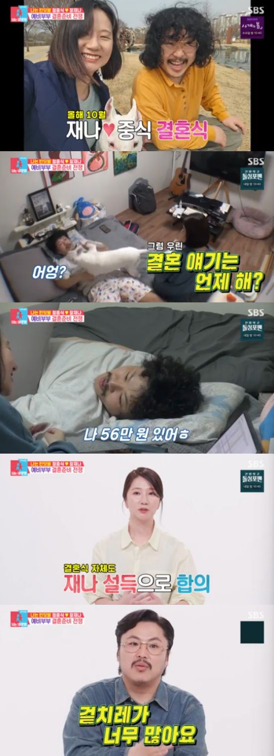 무관심한 정중식의 태도에 장재나는 "결혼식을 왜 해야하는지도 몰랐던 사람이다. 관심 분야가 아니다. 그러니 결혼 얘기가 잘 안 들어오는 것 같다"고 답답해했다.