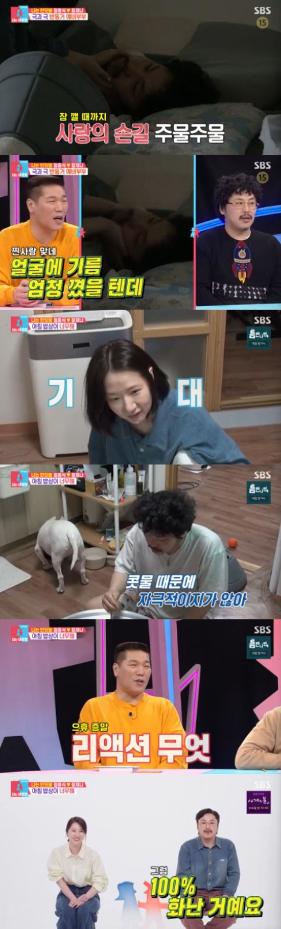 정중식과 장재나는 결혼 전 반동거를 하고 있었다. 완전히 다른 생활 패턴 때문에 각자 다른 방에서 잠을 자는 두 사람. 일찍 일어난 장재나는 정중식의 얼굴 마사지를 해주면서 달달하게 잠을 깨웠다.
