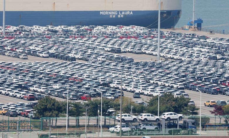 4월 29일 경기 평택시 포승읍 평택항 자동차전용부두에 수출용 차량들이 세워져 있다./뉴스1 |