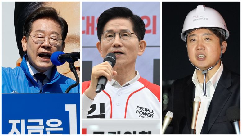 21대 대통령 선거 공식 선거운동이 12일 시작됐다. 왼쪽부터 지지를 호소하는 이재명 더불어민주당 대선후보, 김문수 국민의힘 대선후보, 이준석 개혁신당 대선후보./남강호 기자·뉴스1 |