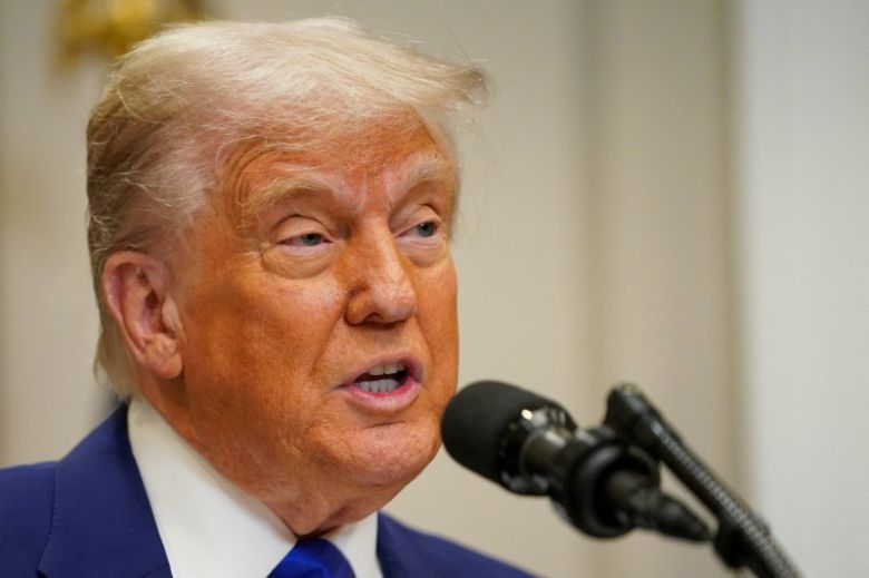 도널드 트럼프 미국 대통령이 12일(현지시간) 워싱턴 백악관 루스벨트룸에서 기자회견을 하고 있다. 로이터 연합