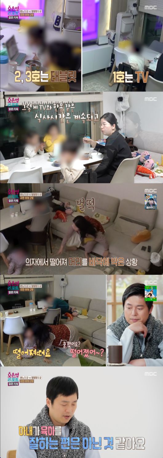 [OSEN=박근희 기자] '오은영 리포트 – 결혼 지옥’ TV를 보며 집중하지 않은 채 육아하는 아내의 모습이 공개됐다.