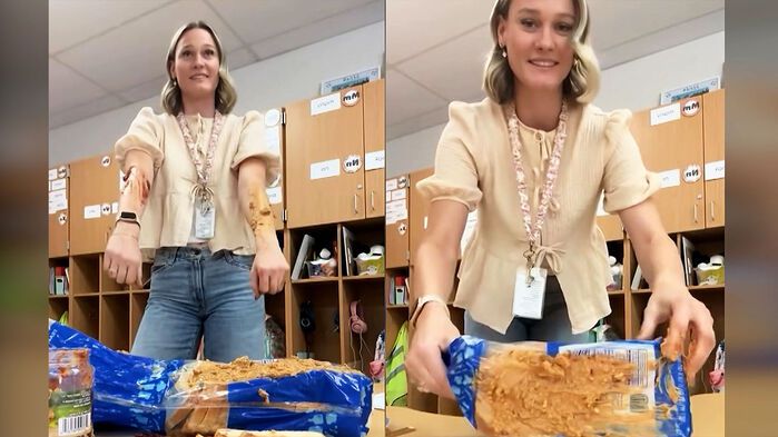 심지어 선생님은 자신의 팔에도 땅콩버터와 딸기잼을 치덕치덕 발랐는데, 대체 왜 이러나 싶죠.