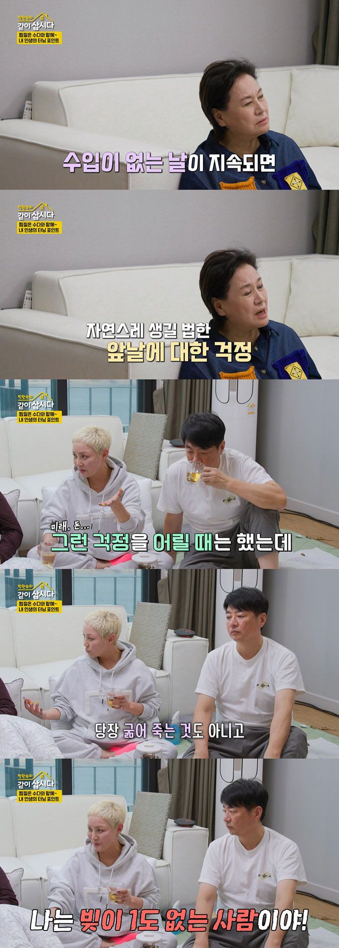 이에 박원숙은 "'뭐 하지?' 싶으면서도 일정한 수입이 없는데 있는 것 가지고 아껴서 쓴다고 해도 앞날이 불안정하고 그랬겠다"며 당시 홍진희 마음을 물었다.
