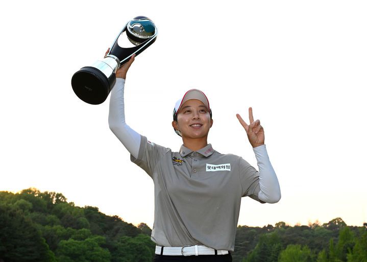 [서울=뉴시스] 추상철 기자 = 11일 경기 고양시 뉴코리아CC에서 열린 '레이디스 유러피언투어(LET) 아람코 챔피언십' 최종라운드, 우승을 차지한 김효주가 트로피를 들고 기념촬영을 하고 있다. (사진=아람코코리아챔피언십 조직위원회 제공) 2025.05.11. photo@newsis.com *재판매 및 DB 금지