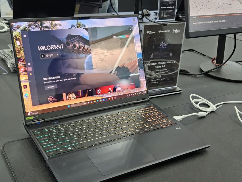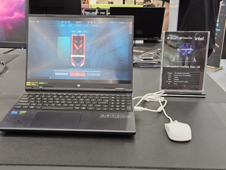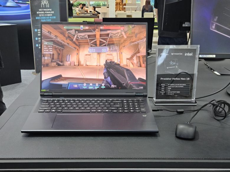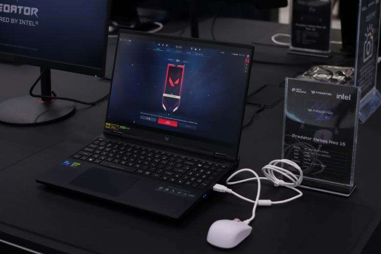 현장에 전시된 '에이서 프레데터 헬리오스 네오 16 AI'은 인텔 코어 울트라 9 275HX 프로세서에 지포스 RTX 5070 Ti가 탑재됐다. 16인치 WQXGA 해상도를 갖춘 OLED 240Hz 디스플레이를 품은 덕분에 FPS에 최적화된 제품이다.