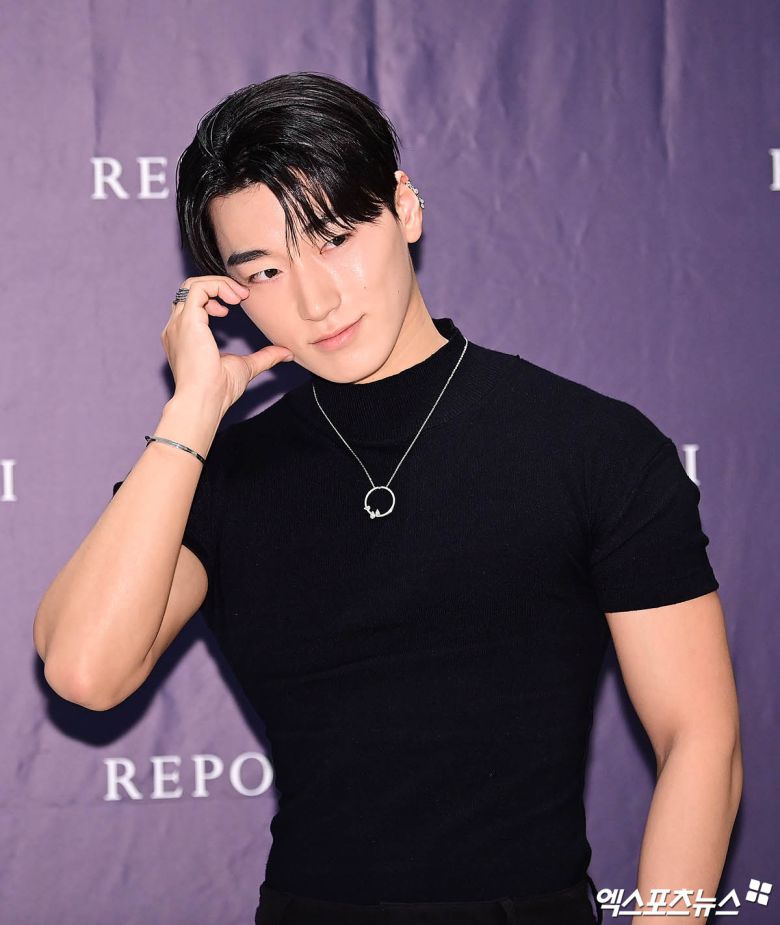 이날 행사에 참석한 에이티즈(ATEEZ) 산이 포토타임을 갖고 있다.