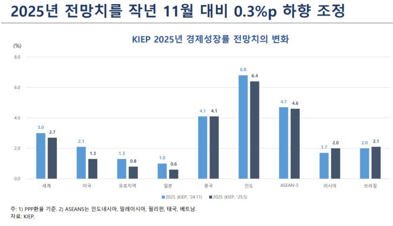 KIEP, 올해 세계 성장률 3.0→2.7% 하향…'관세전쟁' 美 2.1→1.3%