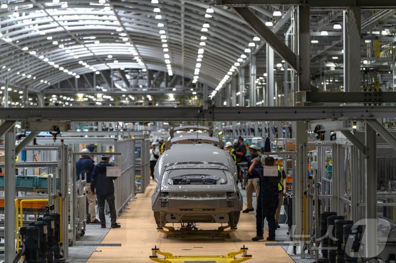 현대차그룹이 26일(현지시간) 미국 조지아주 엘라벨(Ellabell)에 위치한 ‘현대자동차그룹 메타플랜트 아메리카(Hyundai Motor Group Metaplant America, HMGMA)’의 준공식을 개최했다. 사진은 현대자동차그룹 메타플랜트 아메리카(HMGMA)에서 아이오닉5가 생산되는 모습. (현대차그룹 제공, 판매 및 DB 금지) 2025.3.27/뉴스1 |