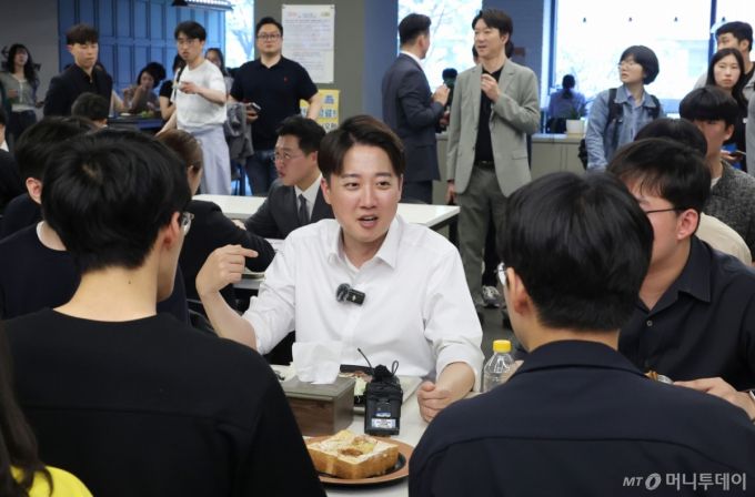 (대구=뉴스1) 공정식 기자 = 이준석 개혁신당 대통령 후보가 13일 대구 북구 경북대를 찾아 학생들과 점심 식사하며 대화를 나누고 있다. 2025.5.13/뉴스1  Copyright (C) 뉴스1. All rights reserved. 무단 전재 및 재배포,  AI학습 이용 금지. /사진=(대구=뉴스1) 공정식 기자