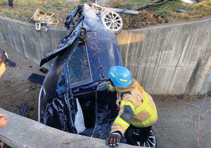 지난 2022년 12월 강릉에서 발생한 급발진 의심 사고 현장. 강릉소방서 제공 |