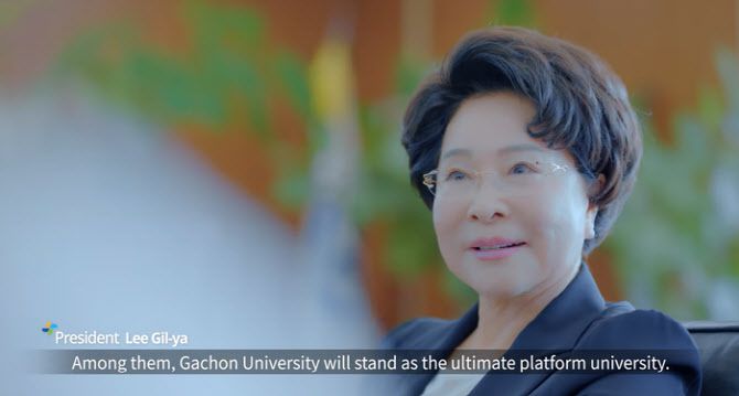영상 속 이 총장은 허리를 꼿꼿하게 세우고 바른 자세로 앉아 “우리가 살아갈 인공지능과 플랫폼 시대는 문턱도 울타리도 없는 것이 특징이다. 우수한 학생들 앞선 기업들은 기회가 넘치는 플랫폼 대학을 선택하게 될 것”이라며 “가천대학교가 그중 최고의 플랫폼 대학이 되겠다”라고 말했다.