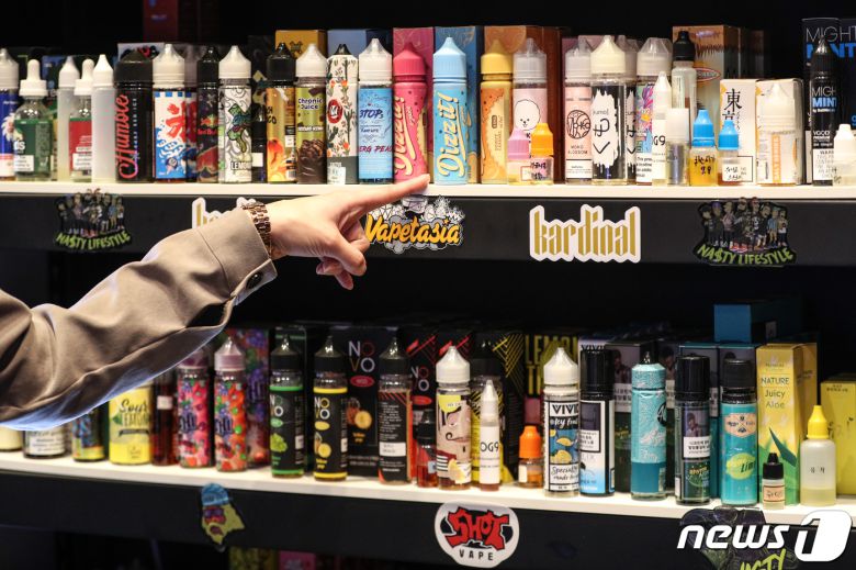 서울의 한 전자담배 매장에 전자담배 액상이 진열돼 있다. /뉴스1 ⓒ News1 |
