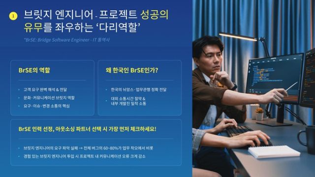 첫 번째 전략은 브릿지 엔지니어(BrSE: Bridge Software Engineer_IT 통역사)의 적극적인 활용이다. 이는 언어 및 문화 장벽 해소의 핵심이다. BrSE는 단순 통역자 역할을 넘어 기술적 전문지식뿐만 아니라 한국 고유의 업무 프로세스 및 문화를 깊이 이해해야 하며, 이를 통해 고객 요구사항을 정확히 전달해 프로젝트 범위 통제를 실현하고 ‘범위 확장(Scope Creep)’을 방지하는 중추적 역할을 수행한다.