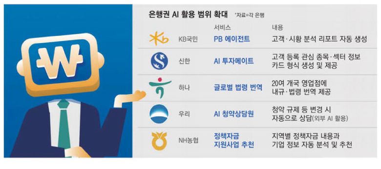 13일 금융권에 따르면 주요 시중은행들은 작년 11월 금융위에서 AI 관련 서비스를 대거 혁신금융서비스로 지정받고 올 들어 본격적으로 선보이고 있다.