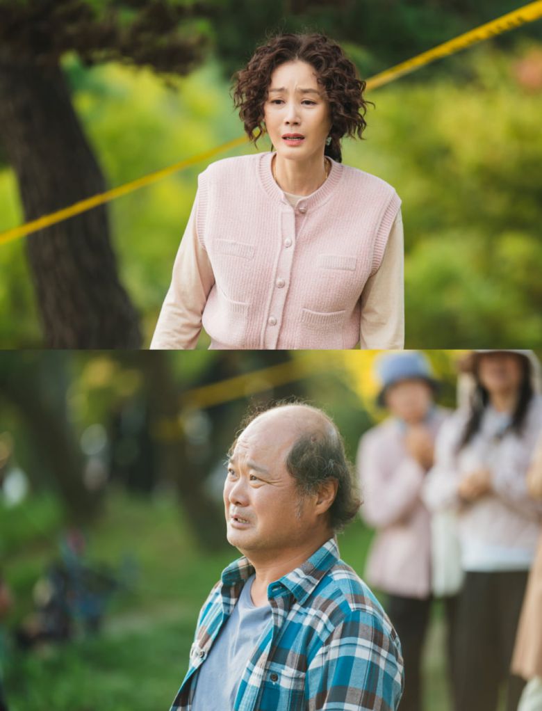 공개된 사진에는 수사 현장을 지켜보는 가족들의 모습이 담겨있다. 사라진 딸의 흔적을 마주한 김광옥(김성령 분)과 한정수(김상호 분)는 세상이 무너질 듯한 표정을 짓고 있어 보는 이들까지 안타깝게 만든다.