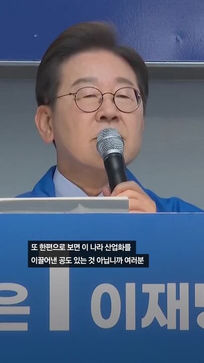 이 후보는 이날 오전 11시쯤 경북 구미시 구미역 광장 집중 유세로 일정을 시작했다. 전날과 같은 파란 점퍼, 빨강과 파랑이 섞인 운동화 차림으로 등장한 이 후보는 “왜 이재명에 대해서는 우리가 남이가 소리를 안 해주나”라고 운을 뗐다. 사투리를 섞어가며 “‘재맹이가 남이가!’ 이렇게 좀 얘기해달라”고 했다. 이어 “경북 안동군 예안면 도촌리 지통마을에서 태어나 초등학교 졸업 때까지 안동의 물과 풀과 쌀을 먹고 자랐는데 왜 (지난 대선) 이 동네에서 20% 지지를 못 받았을까”라며 자신이 TK 출신임을 강조했다.