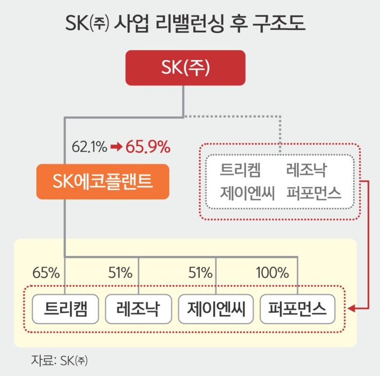 이번 계열사 재편은 비효율적인 중복 사업을 조정하고, 반도체 소재와 인공지능(AI) 인프라 등 미래 사업을 중심으로 구조를 다시 짠다는 취지다. 반도체 소재와 AI 인프라 관련 사업들을 각각 SK에코플랜트와 SK브로드밴드에 집중시켜 사업 간 시너지를 높이고 지분 가치를 높이려는 포석이다.