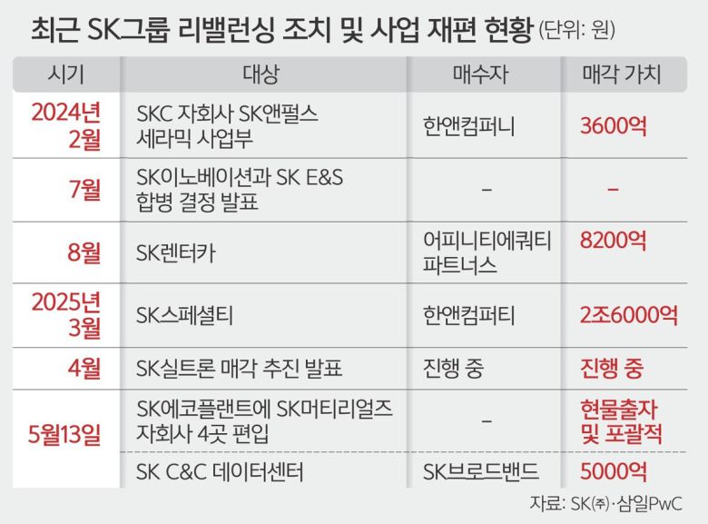 리밸런싱 작업은 올해도 내내 지속될 전망이다. 현재 기업가치가 4조원대에 이를 것으로 예상되는 반도체 웨이퍼 제조사인 SK실트론 경영권 매각 협상을 사모펀드(PEF) 운용사들과 진행 중이다. 지난해 합병한 SK이노베이션도 지난해 4분기 흑자를 이뤘으나 올해 1분기 다시 영업손실을 내며 흑자 전환이 마지막 리밸런싱 성공의 과제로 남았다.