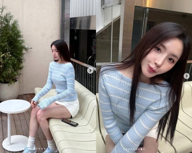 사진 속 성해은은 하늘색 상의에 초미니스커트를 입고 캐주얼룩을 선보였다. 그는 긴 생머리를 늘어트린 채 다양한 포즈를 취한 모습. 어떠한 각도에서도 굴욕없는 미모를 자랑했다.