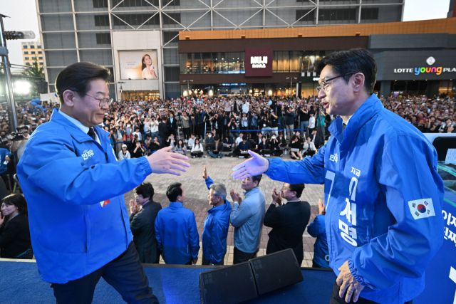 이재명 더불어민주당 대선 후보와 김경수 총괄선대위원장이 13일 울산 남구 롯데백화점 광장에서 진행된 집중유세에서 만나 인사하고 있다. 울산-오승현 기자 2025.05.13 오승현 기자 story@sedaily.com[ⓒ 서울경제, 무단 전재 및 재배포 금지]이 기사의 카테고리는 언론사의 분류를 따릅니다.0공유하기