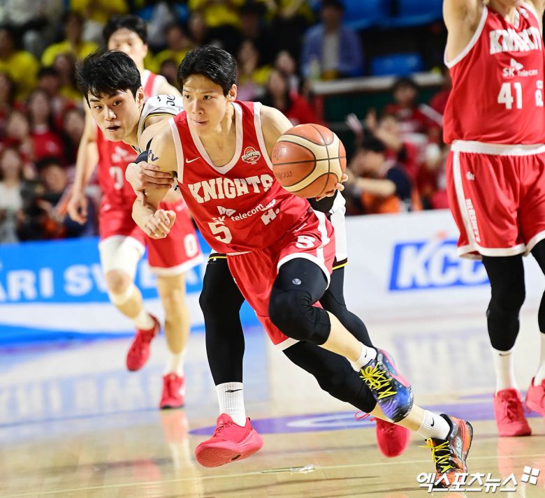 SK는 4쿼터에도 유기상에게 3점을 맞고도 김선형, 워니의 연속 득점으로 달아났다. 점수 차가 크게 벌어지자, 전희철 감독은 김선형과 워니를 불러 들이면서 휴식을 줬다.