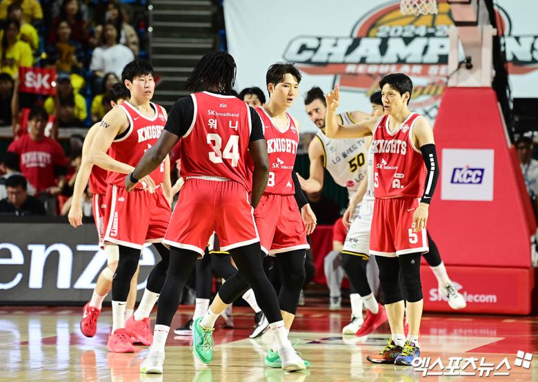 SK가 13일 잠실학생체육관에서 열린 창원 LG와의 ‘2024-2025 KCC 프로농구 챔피언결정전 5차전에서 86-56 대승을 거뒀다.