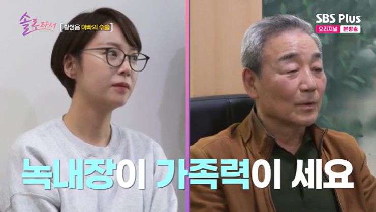 13일 오후 방송된 SBS플러스, E채널 예능 프로그램 '솔로라서'에서는 배우 황정음이 아버지 황재성 씨를 최초 공개한 가운데 함께 안과를 찾았다.