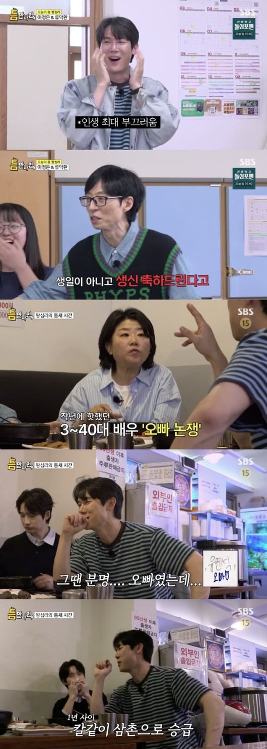 이정은은 유연석에게 “삼촌이라고 불리면 좋냐. 아직 오빠가 좋지 않냐”라고 물었고 유연석은 “전에 연예인들을 오빠, 삼촌으로 나누는 게 있었다. 그땐 분명 오빠였는데 올해는 삼촌이다. 받아들여야 할 것 같다”라고 말했다.