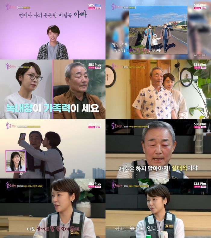 황정음은 “내가 재혼을 하는 게 좋냐 안 하는 게 좋냐”고 물었다. 아버지는 “재혼은 하지 말아야 한다. 절대적이다”라고 단호하게 답했다. 이에 황정음은 “나도 절대 할 생각 없다”고 강조했다.