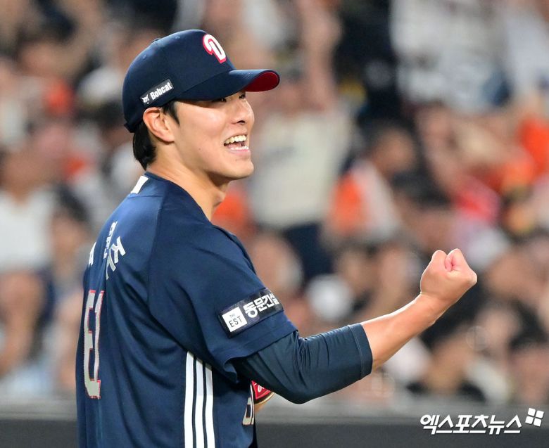 두산은 5회초 상대 실책을 틈타 반격했다. 오명진 좌익수 뜬공 후 강승호가 중전안타를 치고 나갔고, 포일로 2루까지 진루했다. 그리고 풀카운트에서 받아진 김인태의 타구가 내야안타가 됐고, 2루수 황영묵의 송구 실책으로 강승호가 3루를 지나 홈을 밟으면서 1-1 동점을 만들었다.