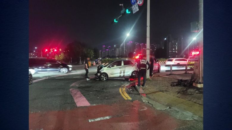 어제(13일) 저녁 8시 20분쯤 대전 서구 만년교 인근 도로에서 경차 1대와 SUV 차량 2대가 잇달아 부딪혔습니다.