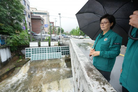 이순희 서울 강북구청장이 풍수해 대비 현장을 점검하고 있다. 강북구 제공 |